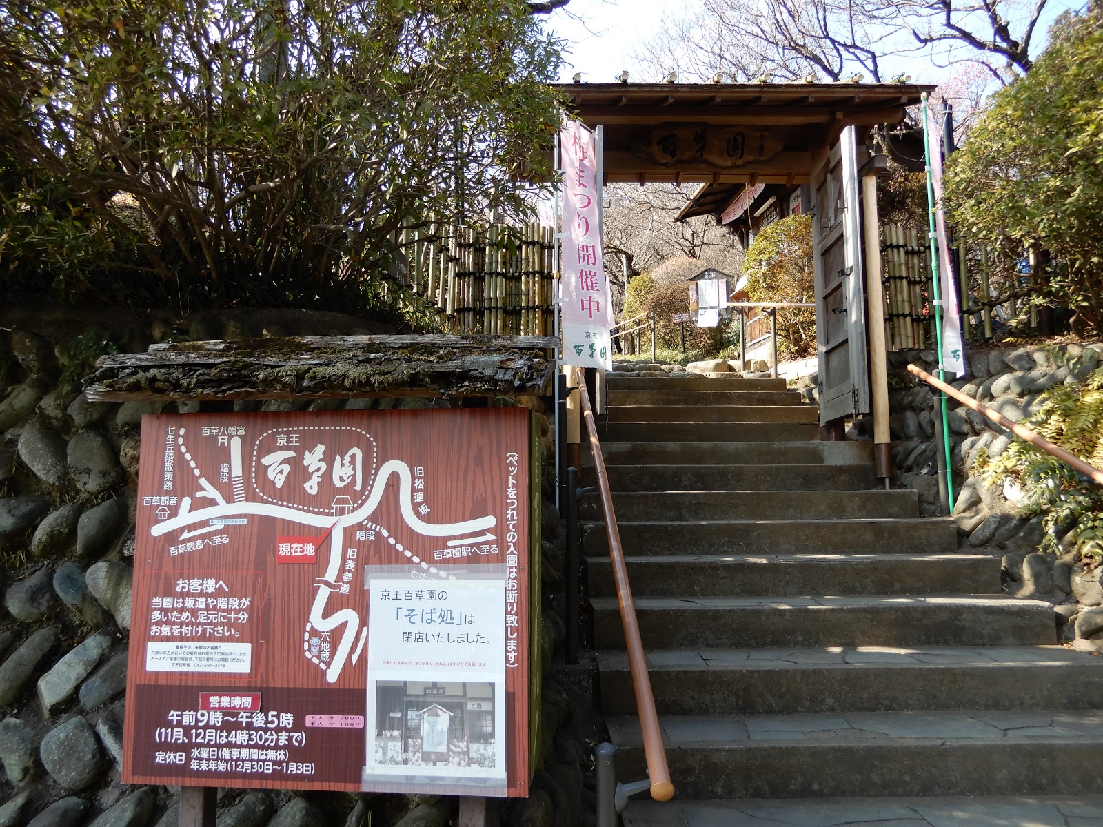 京王百草園。江戸時代の享保年間に小田原城主大久保忠増の室であった寿昌院が、徳川家康の長男岡崎三郎信康を追悼するために中興した黄檗宗の松連寺があったところで、風光明媚な名園として知られました。1886年(明治19)に百草村出身の生糸貿易商の青木角蔵によって整備され百草園として公開され、1957年(昭和32)に京王帝都電鉄の所有となりました。